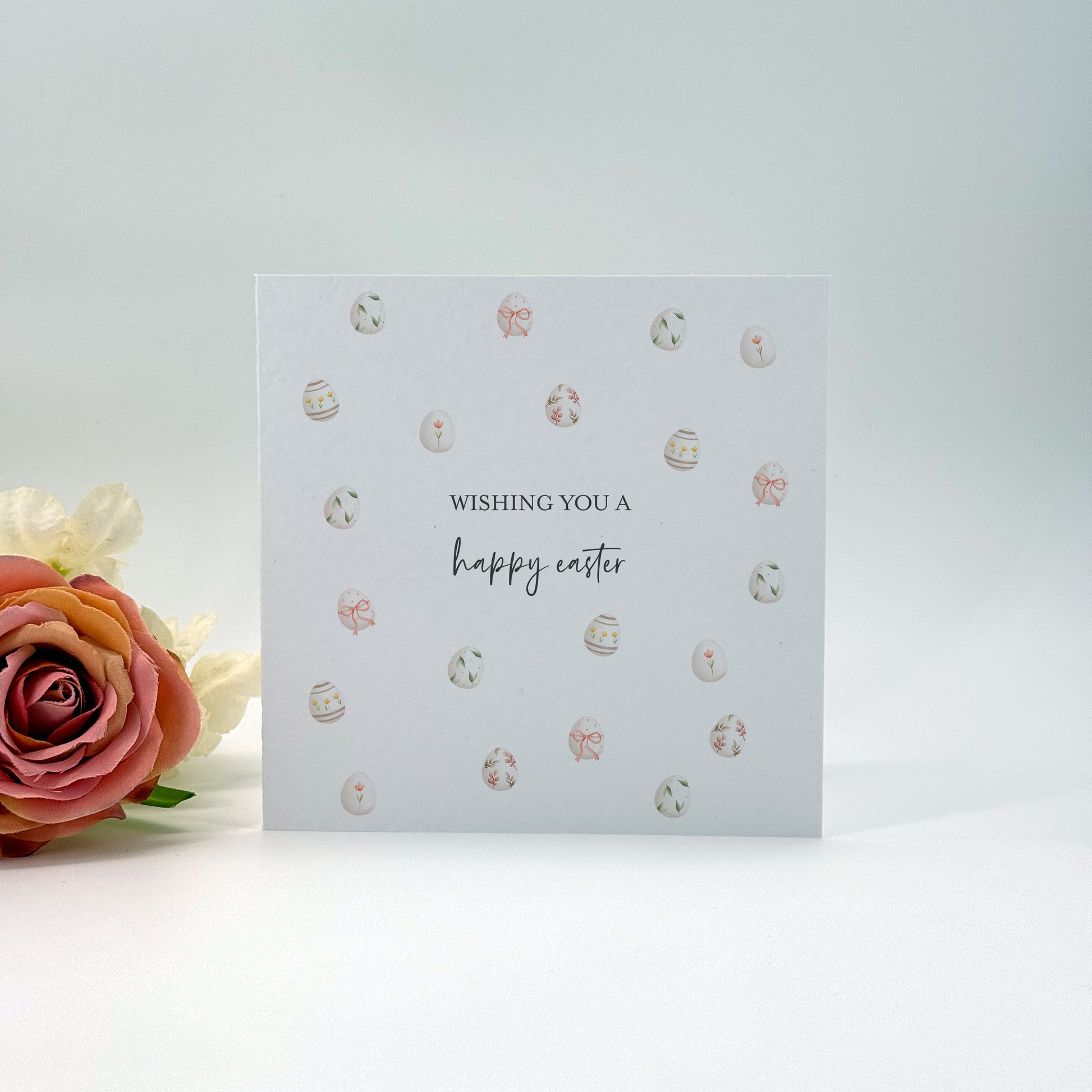 Celebrate Easter with a card as joyful as the season itself đŁđ¸ This beautiful Easter greeting card features the words âWishing You a Happy Easterâ surrounded by a soft flurry of watercolour Easter eggs, creating a cheerful and elegant spring design.